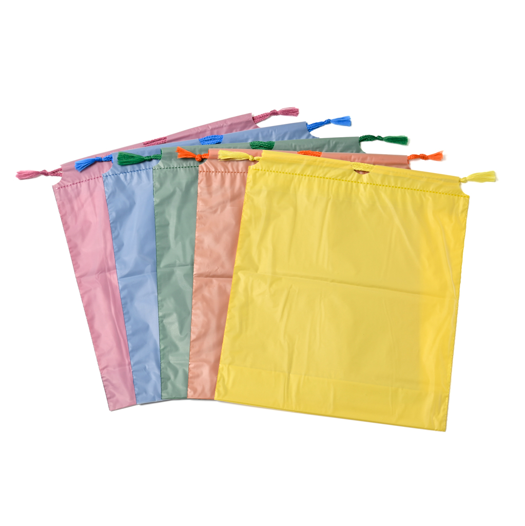 | 巾着 | 2重生地 25㎝×28㎝ 5色(ブルー、イエロー、ピンク、グリーン、オレンジ) |