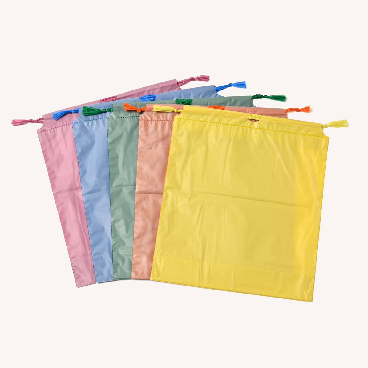 巾着 | 2重生地 25㎝×28㎝ 5色(ブルー、イエロー、ピンク、グリーン、オレンジ) |